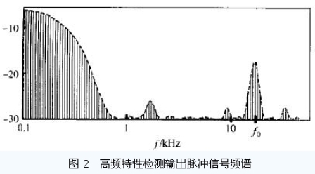 在該頻譜圖中, f 低于2 kHz 時(shí)的頻譜的形狀與原調(diào)制信號(hào)的頻譜的形狀相似Z 脈沖畸變引起的信號(hào)頻譜的變化主要表現(xiàn)是: 在3 kHz 到5MHz 頻段內(nèi)會(huì)出現(xiàn)一個(gè)與駐波點(diǎn)位置密切相關(guān)的較大峰值.該峰值的頻率f0 除與駐波點(diǎn)位置有關(guān)外, 還與同軸電纜的品質(zhì)、高低頻信號(hào)分離電路的特性等有關(guān). 經(jīng)大量的測(cè)試證明, 在對(duì)傳感器進(jìn)行校正后, f只與駐波點(diǎn)位置(即同軸電纜受力位置) 有關(guān), 且f與駐波點(diǎn)和高低頻信號(hào)分離電路之間的距離d 呈非線性關(guān)系.在1m < d < 1km 時(shí), f2= K/d2+ P ,其中K 為與同軸電纜品質(zhì)相關(guān)的常數(shù), P 為與傳感器的電路相關(guān)的常數(shù).