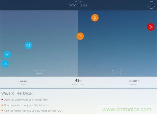 測試人員發(fā)現(xiàn),CubeSensors給出的這些信息較想象中更為有用。例如,產(chǎn)品提示一處起居室的溫度有點低,如果適當(dāng)提升溫度會讓人感覺更加舒適及放松。而在辦公室中,CubeSensors提示改善光照條件能夠幫助提升工作效率。在臥室中,產(chǎn)品給出了需要開窗以便改善空氣質(zhì)量的建議。用戶除了查看數(shù)據(jù)之外,還能看到應(yīng)用給出的實用建議,例如“盡快開窗”或“提升溫度會讓你感覺更加舒適”。盡管看起來似乎平淡無奇,但CubeSensors背后的團隊表示,通過這些小建議,產(chǎn)品可以幫助用戶避免罹患感冒、過敏、頭疼等癥狀。
